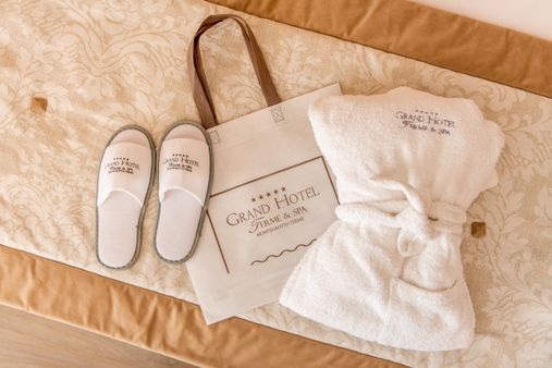 Avec un souci du détail, les couleurs et l'aménagement du Grand Hotel Terme & Spa créent une atmosphère élégante et accueillante. Les 107 chambres et 29 suites offrent un confort moderne pour des jours de détente. Les équipements incluent entre autres une minibar, une TV écran-plat par satellite, un coffre-fort, et selon la catégorie, une douche ou une baignoire. Le Wi-Fi gratuit dans toutes les chambres assure une excellente connexion même en vacances. Les chambres doubles sont également disponibles pour une personne.